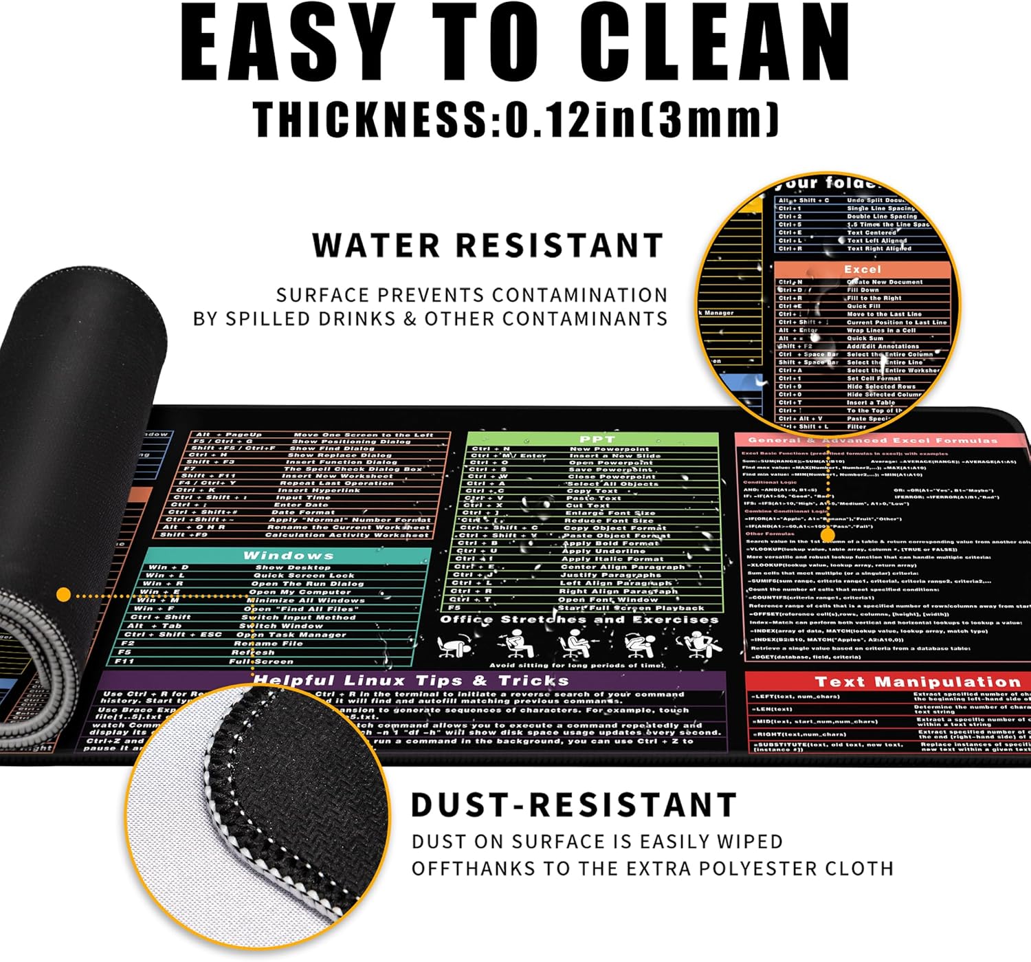 Forget boring plain mouse pads. This XL desk mat is your productivity partner — combining comfort, style, and utility. Printed with the most useful keyboard shortcuts for Excel, Word, PowerPoint, and Outlook, it keeps every command right in front of your eyes. No more wasting time searching online — your cheat sheet is always on your desk.
